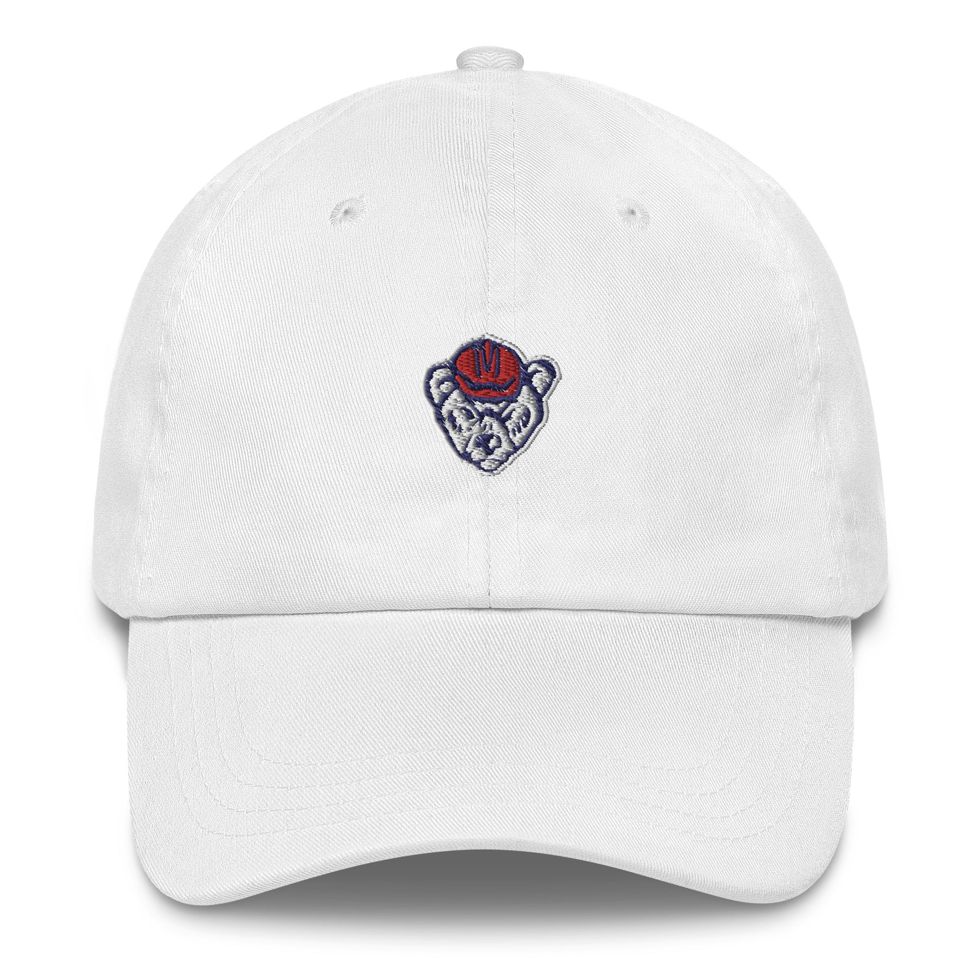 our bear in a red hard hat, stitched with 1914 below—worn as a quiet nod to the foundation this fanbase was built on.