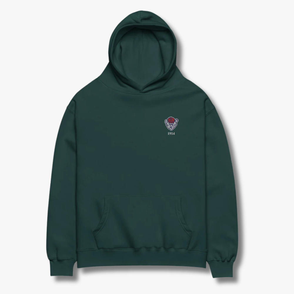 our bear in a red hard hat, stitched with 1914 below—worn as a quiet nod to the foundation this fanbase was built on.