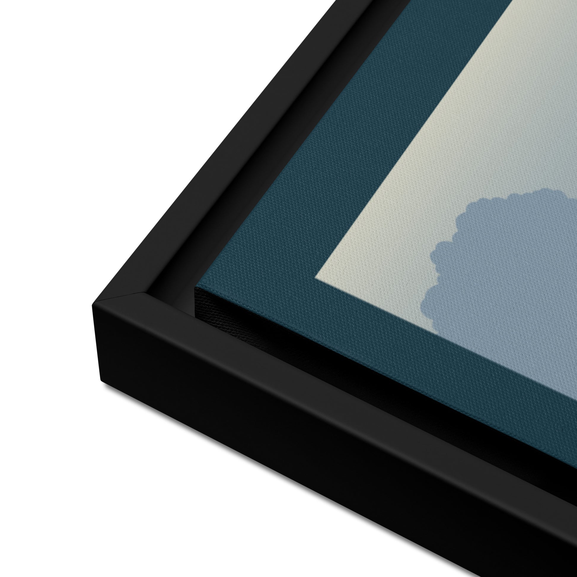 - The framed canvases with brown and black frames have a black inside around the canvas, and the canvases with white frames have a white inside around the canvas.